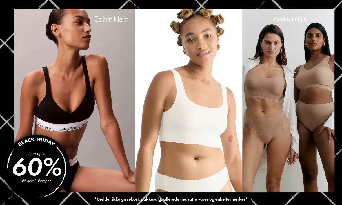 Er du på udkig efter nyt lingeri, så finder du det her i vores brede sortiment af undertøj til alle lejligheder. Uanset om det er en ny BH, trusse, bodystocking, g-streng, amme-BH, top, stropløs BH, bikini overdel, strømper, underdel, frækt lingeri eller en badedragt – så kontakt os gerne. Vi hjælper dig med at finde det helt rette og sammensætte dit undertøj, så du kan føle dig komfortabel eller forførende i din hverdag.