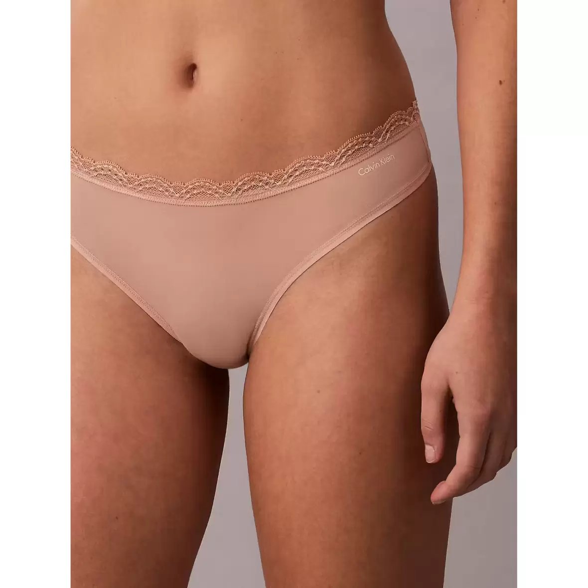 Denne bløde og behagelige string trusse fra Calvin Klein er lavet i en glat nylon kvalitet, der sikrer en komfortabel pasform hele dagen. Den elegante mahogany rose farve giver et sofistikeret og feminint touch, perfekt til enhver lejlighed. Trussen har en sød blondekant foroven, som tilføjer et ekstra lag af charme og femininitet.Materiale.