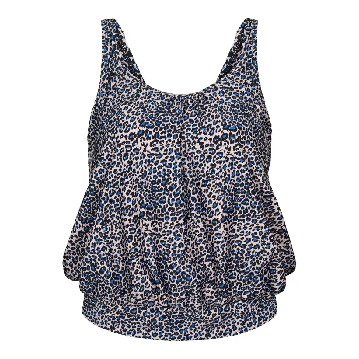 Oplev den perfekte kombination af komfort og stil med vores Tankini Top i farven Kap Verde fra Wiki. Denne tankini uden bøjle er designet med en let vattering, der giver en smuk silhuet uden at gå på kompromis med bevægelsesfriheden. Det unikke printede mønster tilfører et friskt og livligt udtryk, perfekt til strand- eller pooldage.Tankinien har brede, justerbare stropper, så du kan tilpasse pasformen til din krop. Indvendigt er der en elastikkant under barmen, som sikrer god støtte og komfort hele dagen.