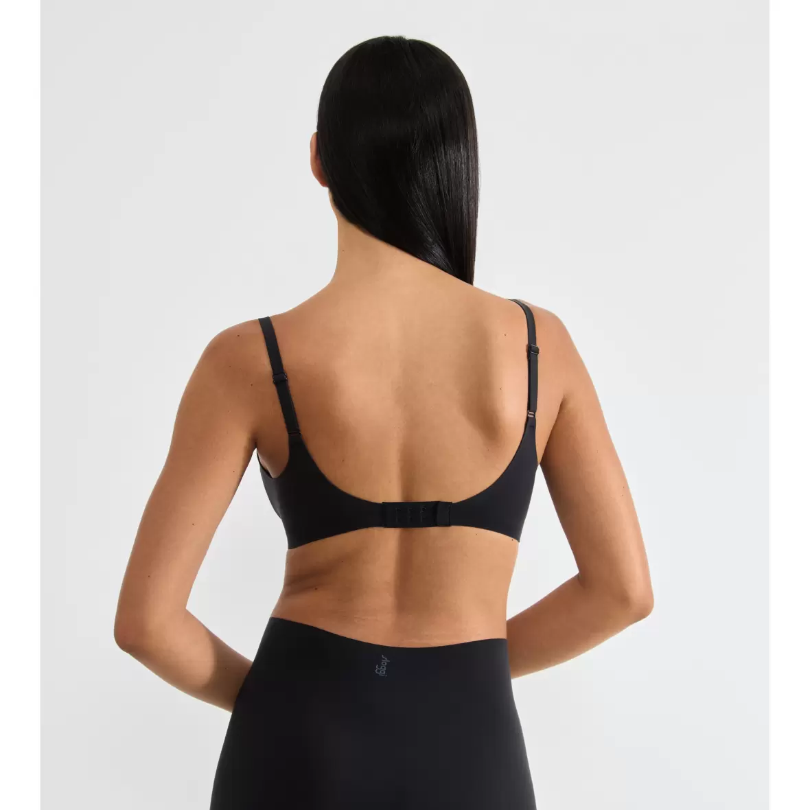 Oplev den ultimative komfort med Sloggi Zero Feel THE UP BH i klassisk sort. Denne BH er designet til at give dig en glat og elegant silhuet uden bøjler og irriterende kanter. Med åndbare push-up indlæg, der kan tages ud, får du den støtte, du har brug for, samtidig med at du kan tilpasse udseendet efter din egen stil. De justerbare stropper sikrer en perfekt pasform, mens hægte- og øjenlåsen bagpå giver ekstra sikkerhed og komfort.Materiale: