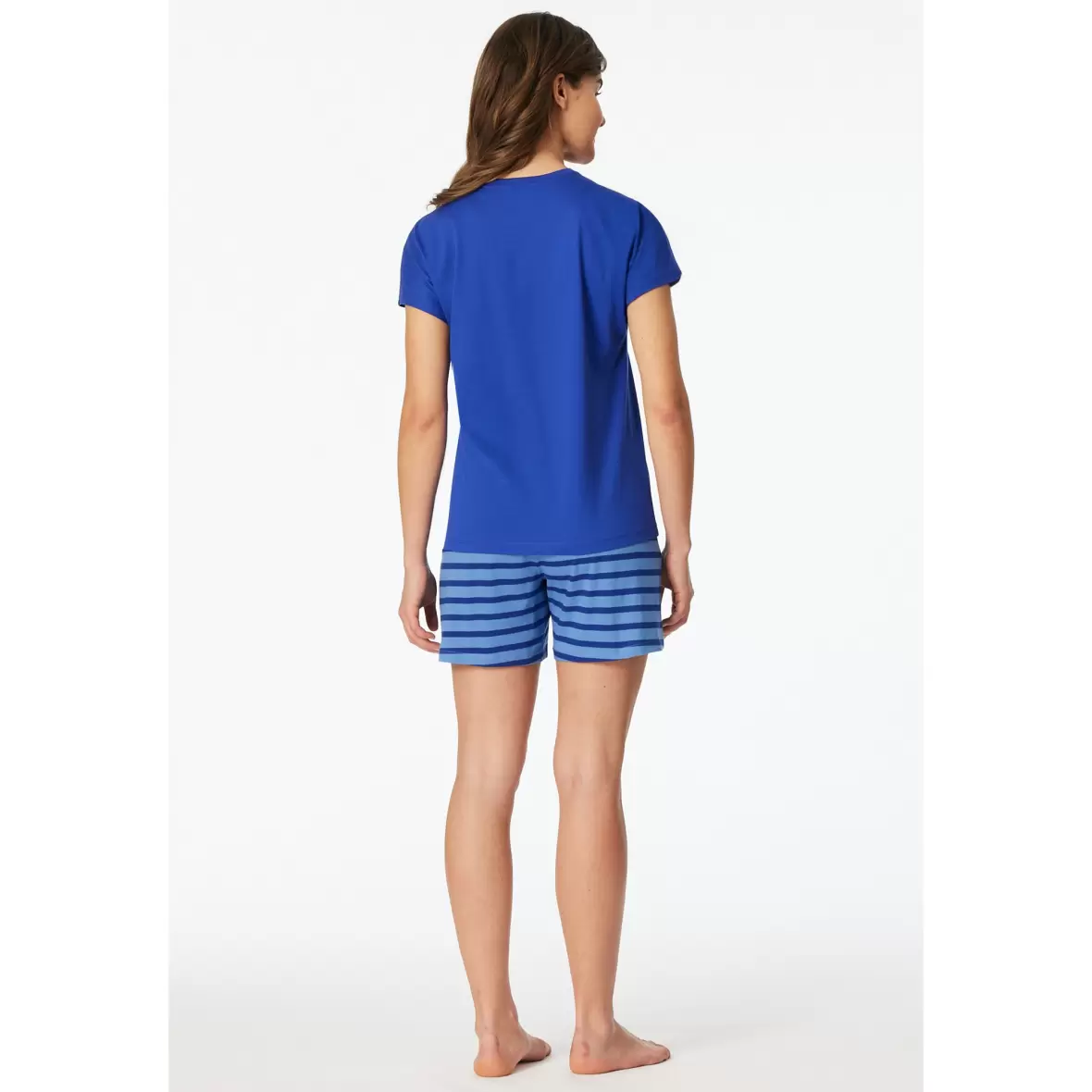 Oplev den perfekte kombination af komfort og stil med denne kort pyjamas i farven royal blue fra Schiesser. Denne pyjamas er designet med fokus på kvalitet og funktionalitet, hvilket gør den ideel til afslappende aftener derhjemme eller til en god nats søvn.Blusen har praktiske korte ærmer og en moderne rund halsudskæring, som sikrer en behagelig pasform. Den matchende shorts-model er både luftig og trendy, og de smarte striber tilføjer et stilfuldt touch til dit nattøj.