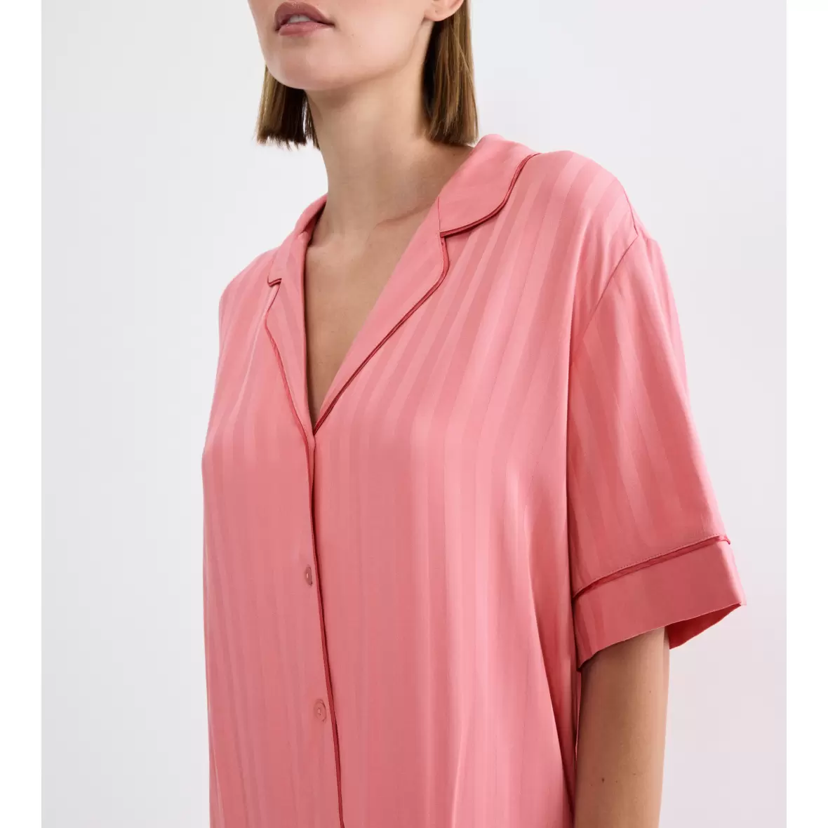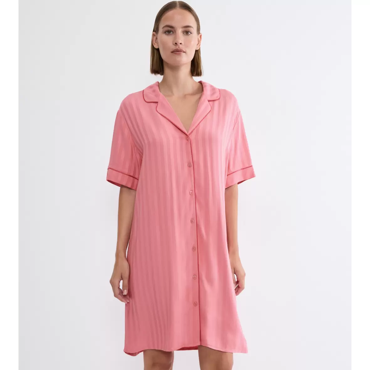 Oplev den behagelige Jacquard Natkjole Skjorte i den smukke nuance Cherry Rose fra Triumph. Denne natkjole er designet som en skjortemodel med praktisk knappelukning foran, hvilket giver en afslappet og feminin silhuet til din nattesøvn.Det stribede mønster tilføjer et elegant og tidløst touch, der gør denne natkjole til en uundgåelig del af dit nattøj.