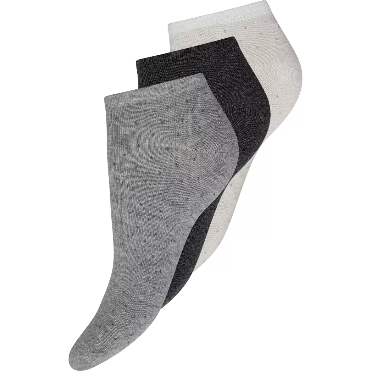 Opgrader din sokkeskuffe med vores Sneaker Socks 3-Pak fra DECOY! Disse trendy sneaker strømper kommer i en pakke med tre farver: prikker, grå og råhvid, så du kan mixe og matche med dit daglige outfit. Lavet af en blød og behagelig bambuskvalitet, sikrer disse strømper, at dine fødder forbliver komfortable hele dagen lang.Strømperne er designet til at passe størrelser fra 37-41, hvilket gør dem ideele til de fleste.