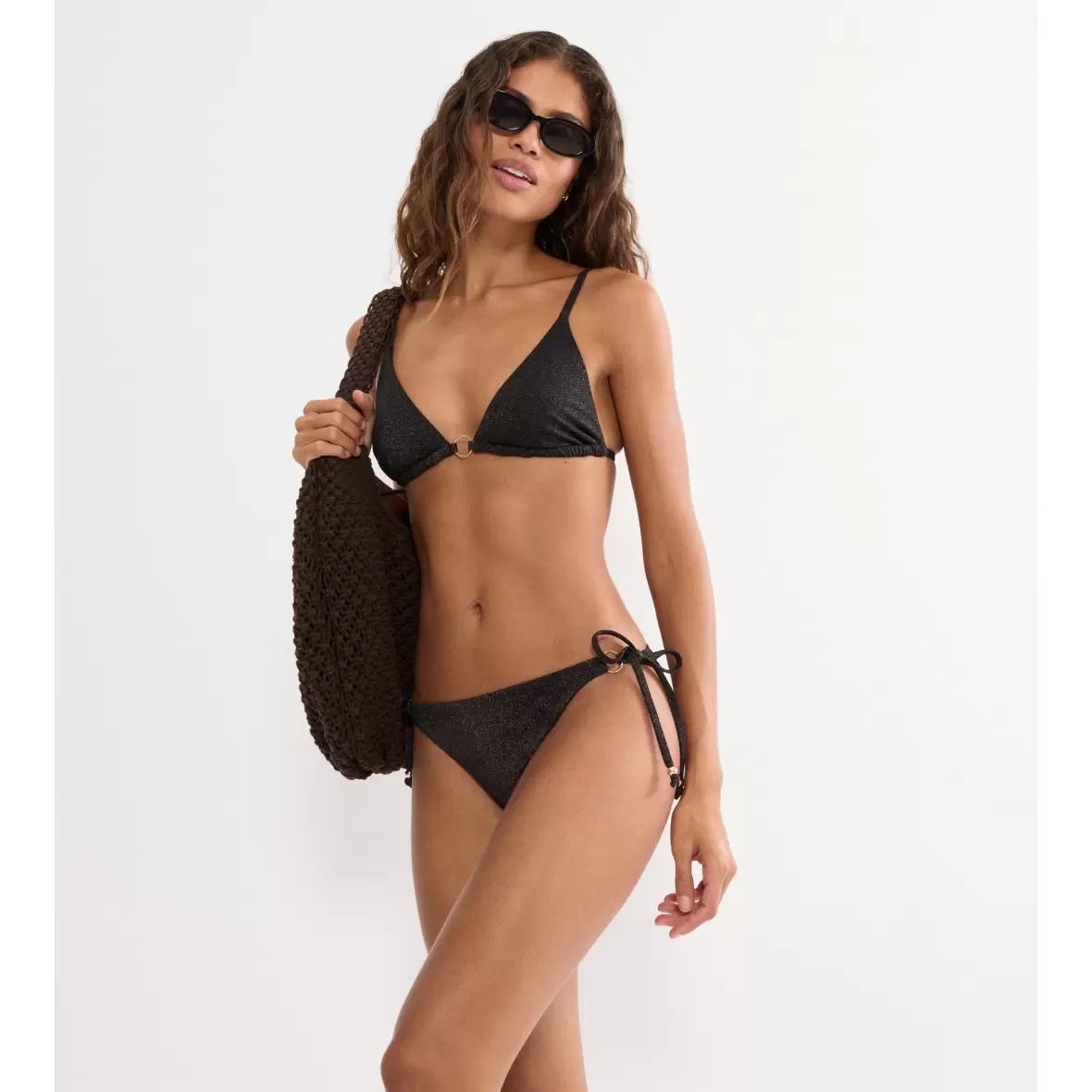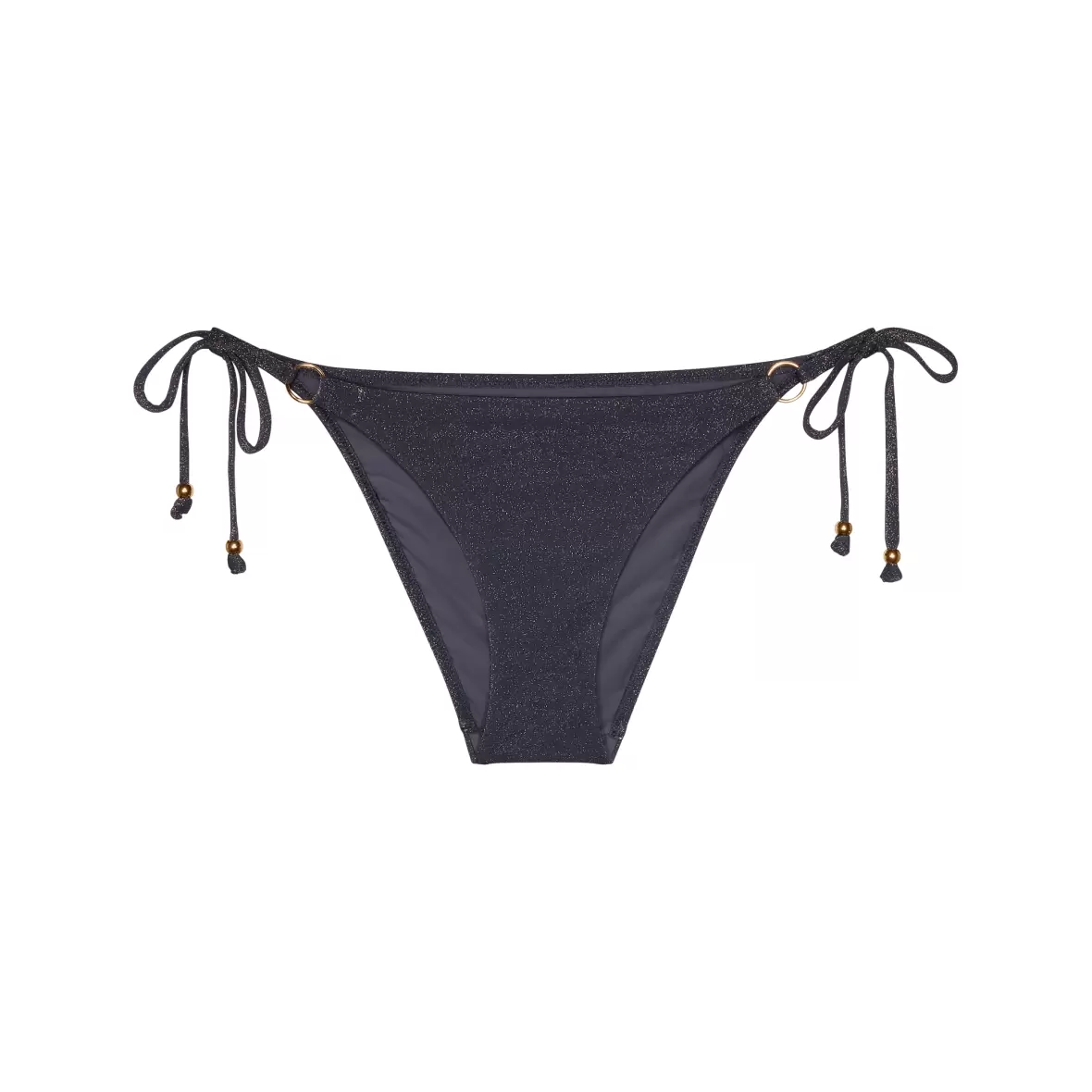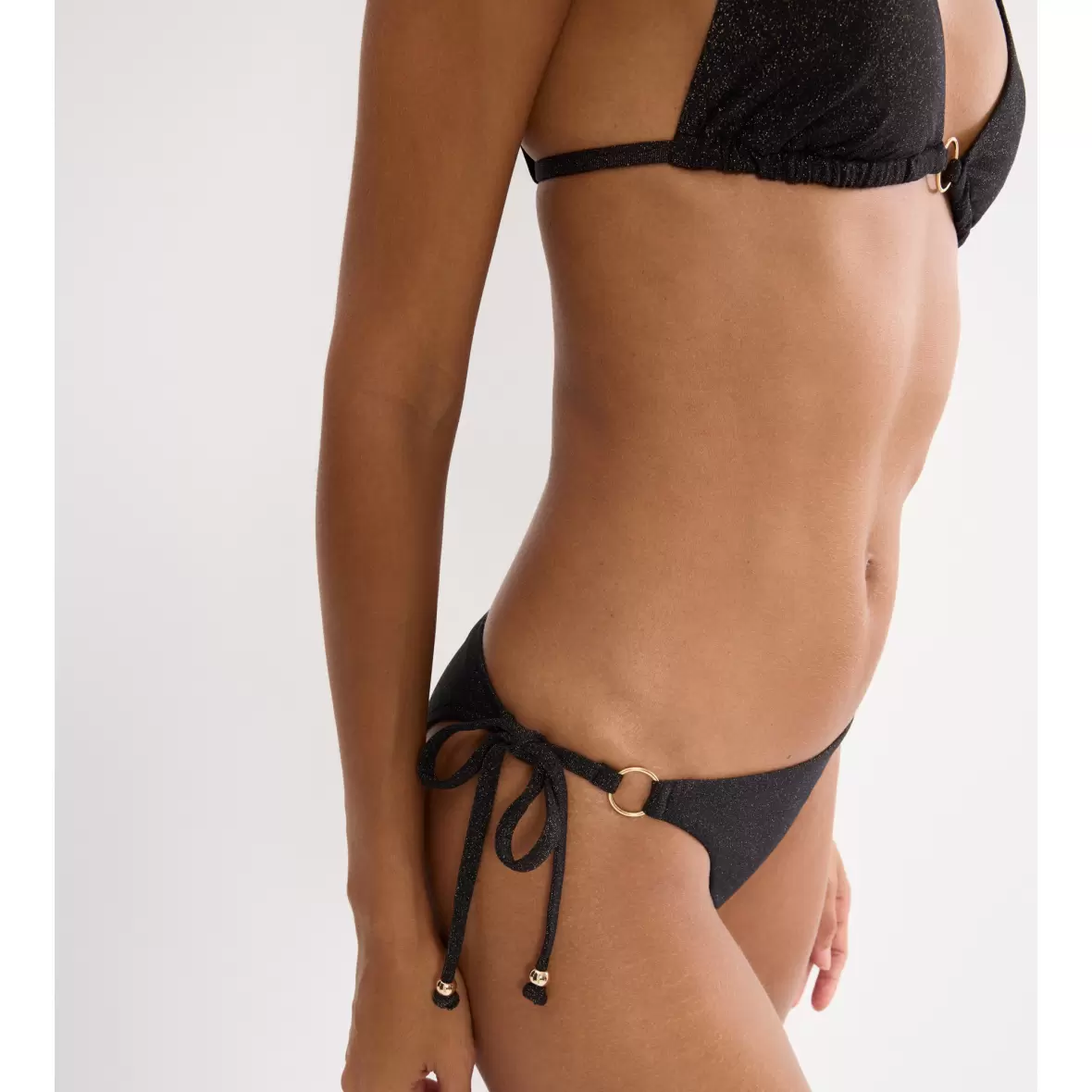 Denne bikini trusse er en tai model fra Triumphs serie Summer Sunset, der giver dig en flatterende pasform, samtidig med at den sikrer maksimal bevægelsesfrihed. De smukke ring detaljer i siden tilføjer et elegant touch, der gør denne bikini til et must-have til din sommergarderobe.Den klassiske sorte farve med glimmer effekt giver et luksuriøst udtryk, så du kan føle dig selvsikker ved poolen eller stranden. Med justerbare stropper i siden kan du tilpasse pasformen.
