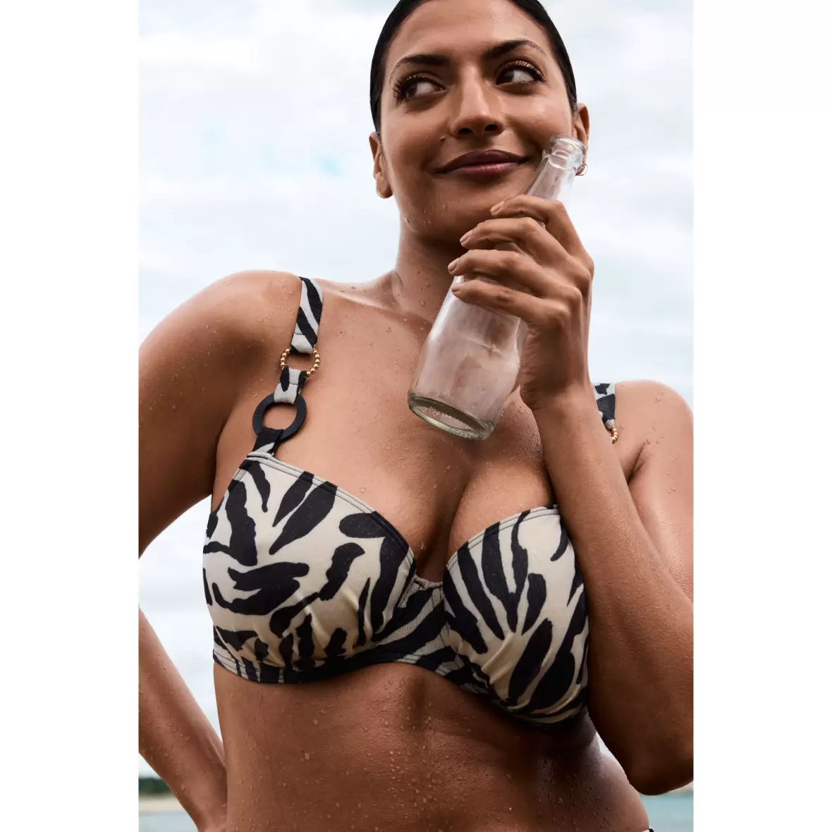 Opdag Dalice Full-Cup bikinitop i farven Sauvage Shine fra Primadonna – en fantastisk tilføjelse til din sommergarderobe. Denne smukke bikinitop er designet som en fuldskåls model med bøjle og uden vattering, hvilket giver god støtte og komfort, mens du nyder solen. Den tilhører Primadonna's eksklusive Dalice Swim serie og har et elegant design med unikke ring detaljer ved stropperne, der tilføjer et strejf af stil.Bikinitoppen har et smart print med en glimmer effekt, der vil få dig til at stråle ved poolen eller på stranden. Stropperne er justerbare, så du nemt kan tilpasse dem til din ønskede pasform, og de kan styles til både krydsryg og nakkestrop. Vær opmærksom på, at badetøj udvider sig i vand, så vælg din størrelse med det i tankerne.