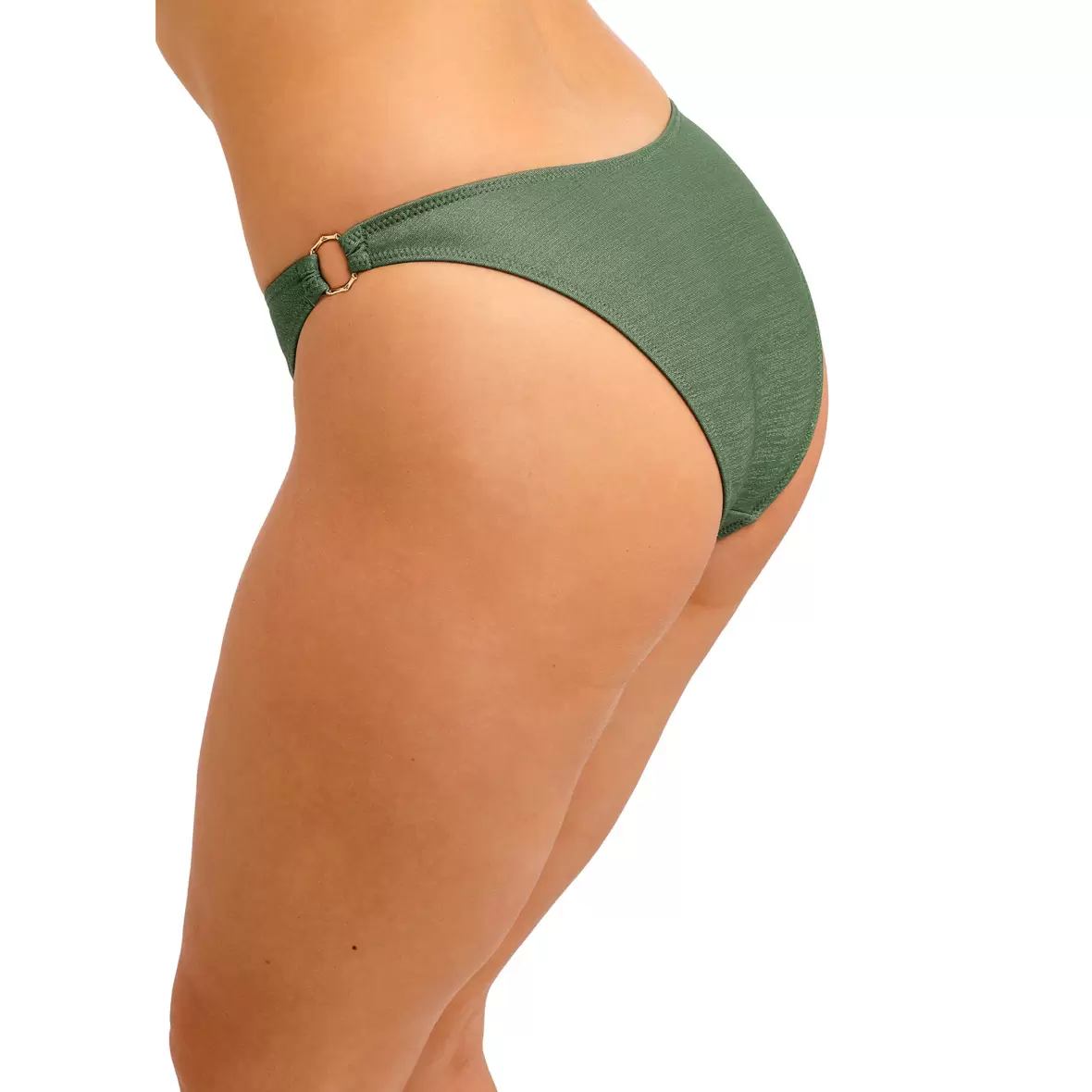 Denne bikintrusse er designet i en trendy brazilian model, der sidder højt på hofterne og giver en lille dækning bagpå, hvilket gør den både komfortabel og stylish. Den er en del af Freya's populære Arizona Wave serie, som kombinerer moderne design med tidløse elementer.Farven Fern er en smuk grøn nuance, der er beriget med en glimmer effekt, hvilket gør, at du skiller dig ud på stranden eller ved poolen. Husk at badetøj har tendens til at udvide sig i vand, så vælg en str. der sidder til, samtidig med at den er behagelig.