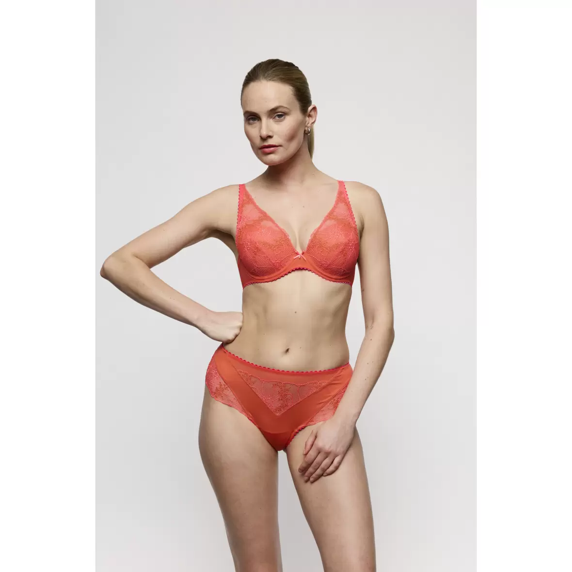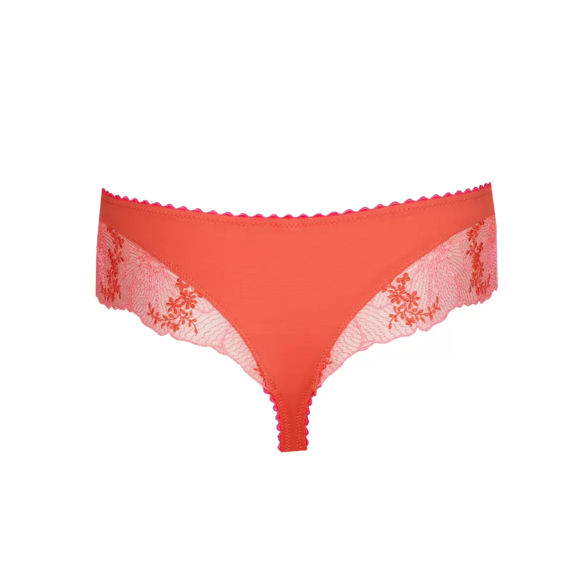 Denne smukke luxury string trusse er en del af Marie Jo's populære serie Solene, og den er designet til at give dig en let og feminin følelse. Trussen kommer i en fortryllende koral farve, der tilføjer et strejf af elegance til din undertøjskollektion.De fine, transparente blonder skaber en smuk afslutning på kroppen og tilføjer et sofistikeret look, der gør, at du føler dig både sexet og komfortabel. Gør din undertøjssamling komplet med denne luksuriøse trusse fra Marie Jo, og oplev forskellen ved kvalitetsundertøj. Shop nu og forkæl dig selv med noget særligt!