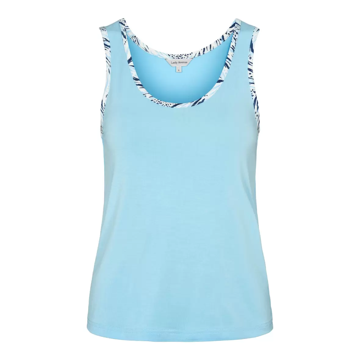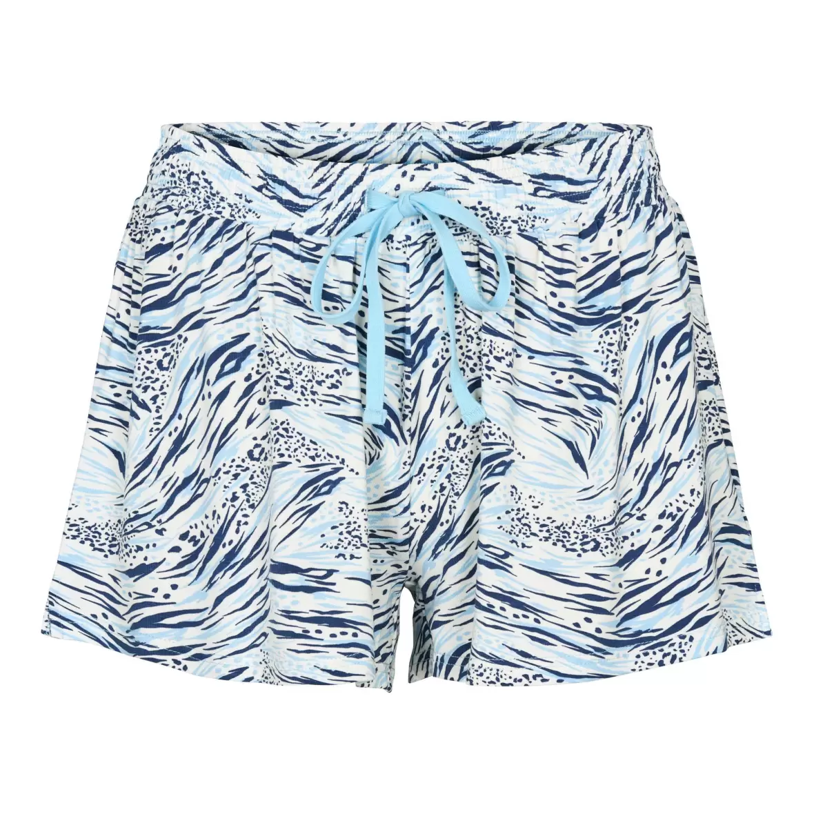 Sættet er uden ærmer og kommer med shorts, hvilket gør det ideelt til de varmere nætter.Fremstillet af blød og behagelig bambuskvalitet, føles det luksuriøst mod huden. Toppen har brede stropper i en klassisk ensfarvet stil, der er suppleret med smarte printede afslutninger, hvilket giver et moderne og stilfuldt udtryk. Shortsene er designet med et unikt safari print i blå nuancer, der tilfører et friskt og livligt præg til dit nattøj, og har justerbart bindebånd i taljen.