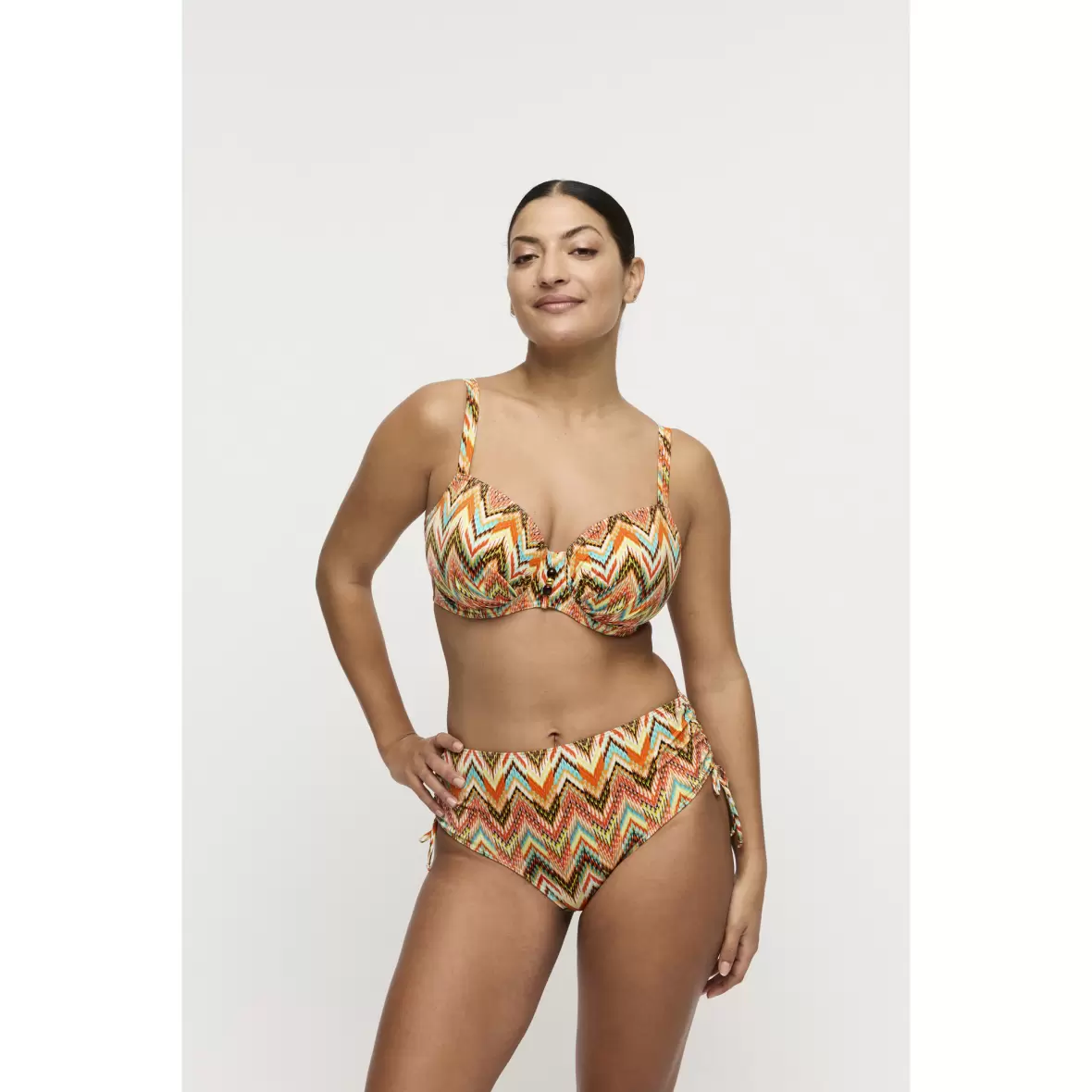 Denne bikinitop er designet til at give dig den støtte, du har brug for, med sin bøjle og uden vattering. Det smarte Ikat sommer print tilføjer et friskt og moderne look, der gør, at du skiller dig ud ved poolen eller på stranden.Med justerbare stropper kan du tilpasse pasformen, så den sidder behageligt. Husk, at badetøj har en tendens til at udvide sig i vand, så vælg din størrelse med omhu for den bedste pasform.