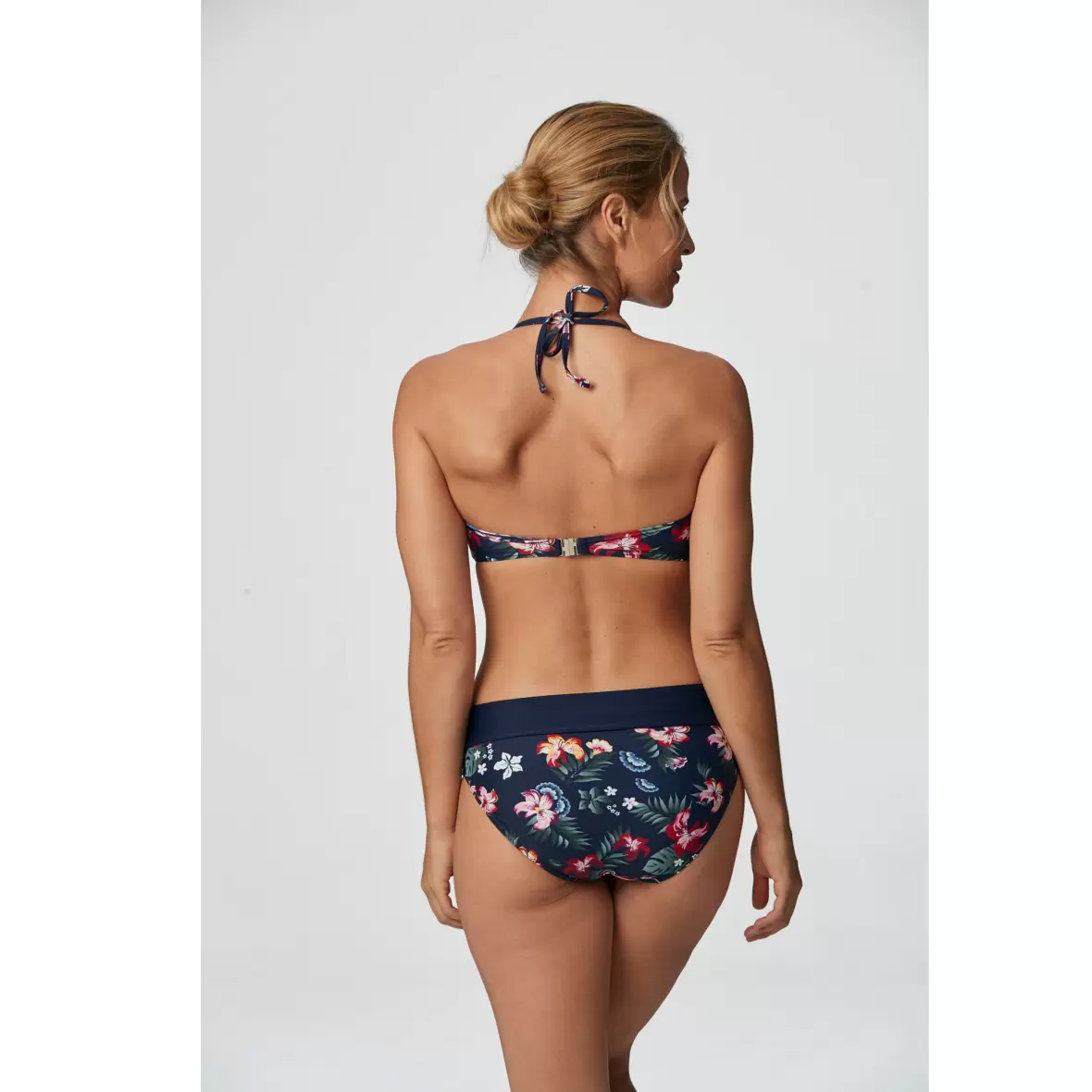 Super behageligt trusse med blomster mønster på. Trussen har en bred linning ved livet der er helt navy blå og som sikre at trussen sidder behageligt på kroppen. En anderledes trusse der skiller sig ud, men som bestemt sidder behageligt.