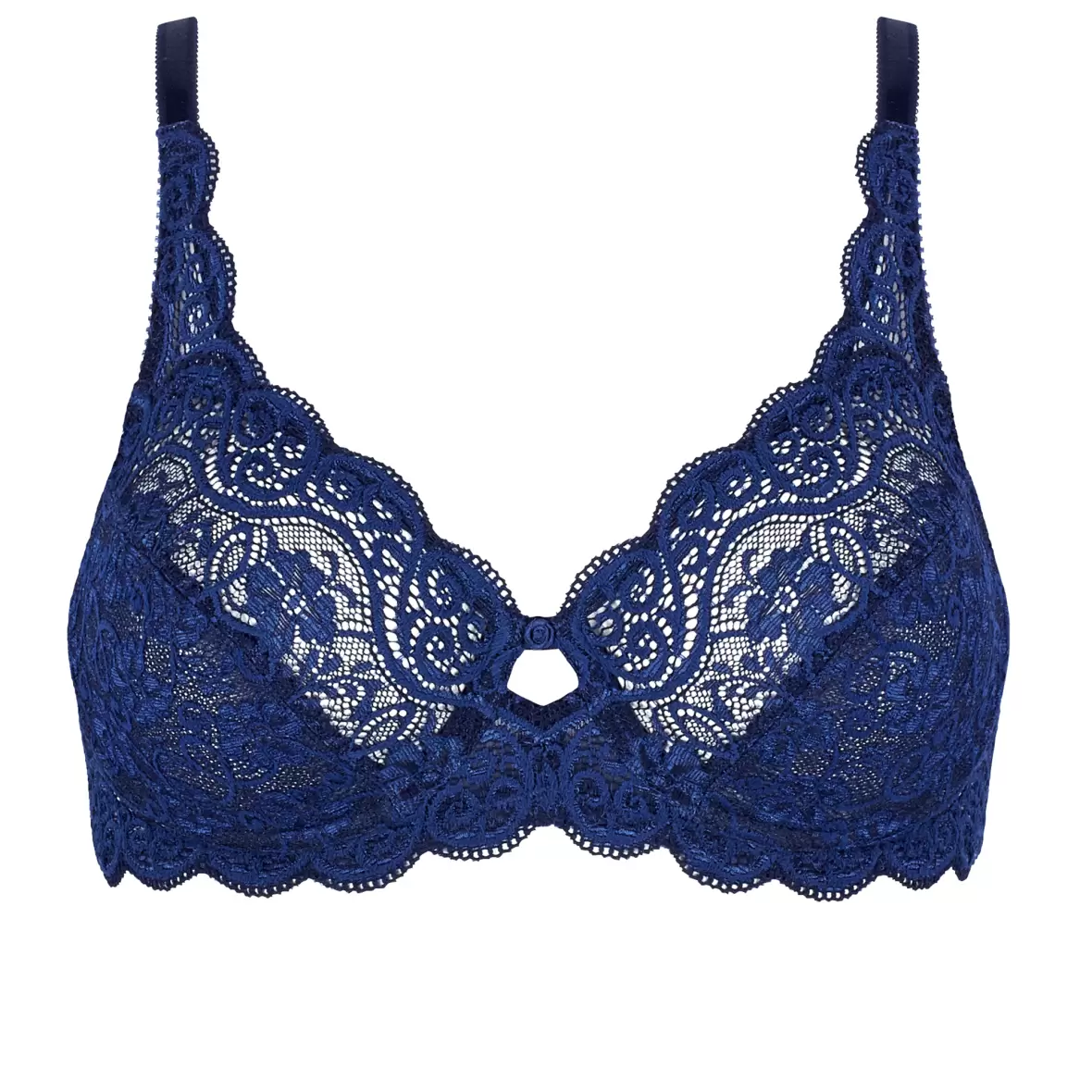 En BH med bøjle og uden vattering. Skålen er inddelt i to, den nederste del af skålen har to lag, for at give barmen en god support. Den øverste del af skålen er en blonde, som lægger sig til huden for at sikre en flot afslutning under tøjet.