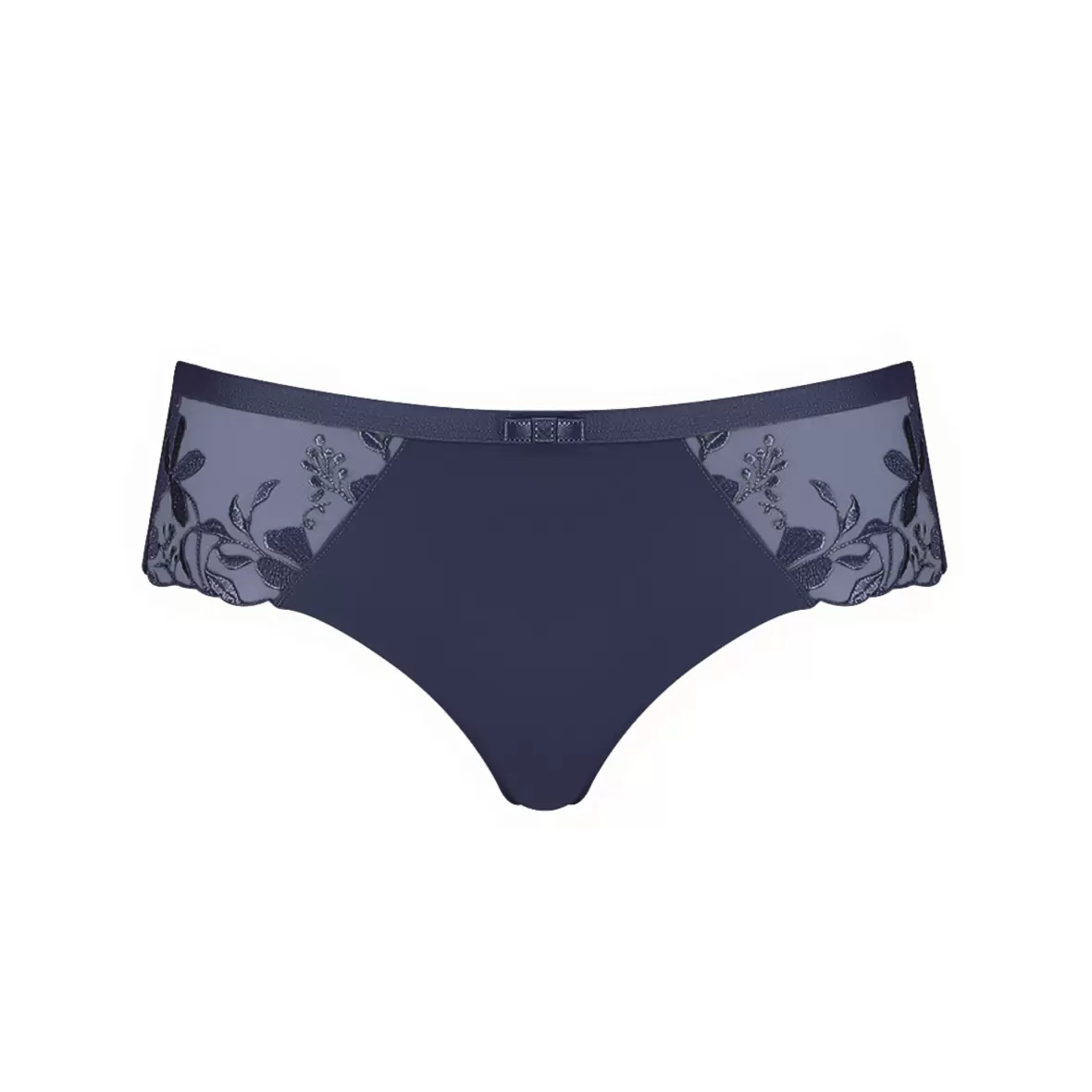 Hipster trussen har en elegant blonde foran. Trussens kant i benudskæringen er sømløse, og derfor usynlige under tøjet. Kanten i livet er elastisk.