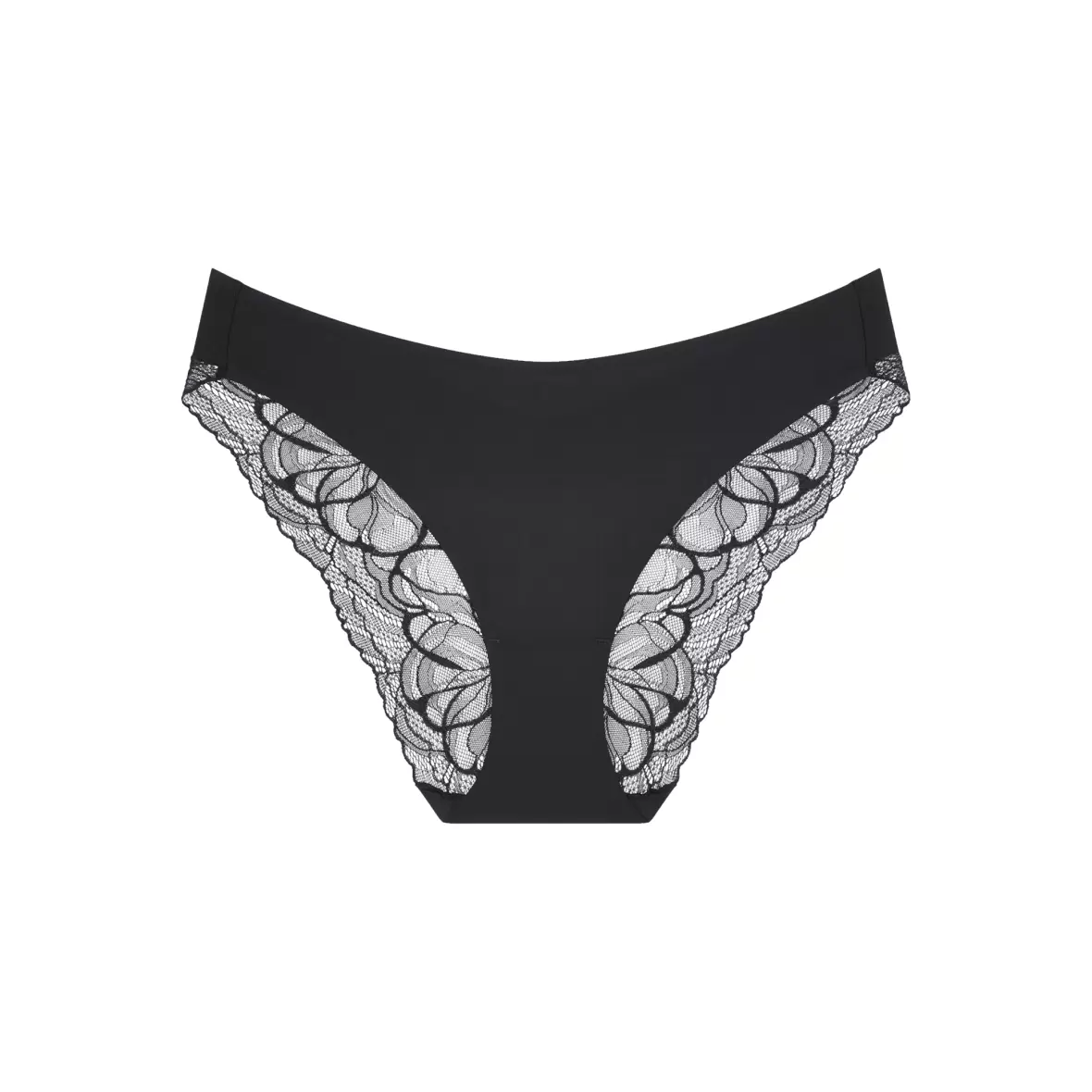 Denne tai trusse har en høj benudskæring, med et fast stykke foran og en smuk transparent blonde bagpå.Materiale: