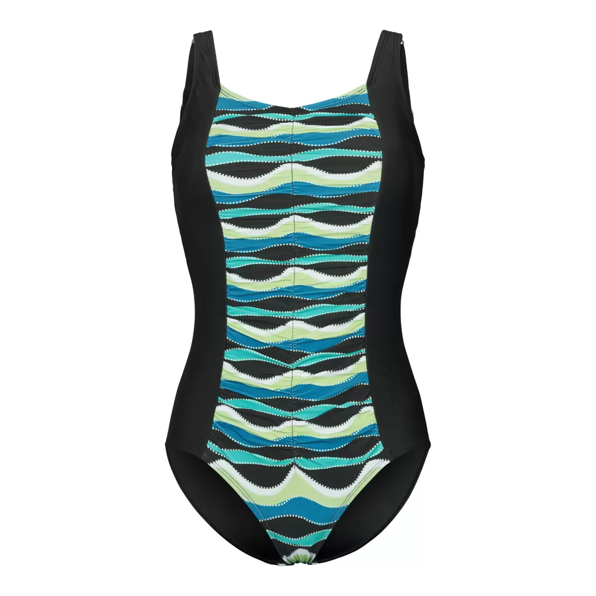 En badedragt uden bøjle eller vattering. Denne badedragt går højt op på barmen og giver et flot løft. Stropperne er brede og justerbare. Materiale: