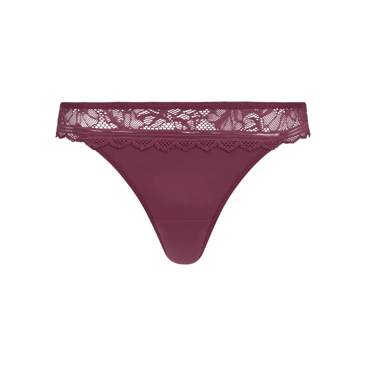 Denne fine tanga trusse har både foran og bagpå en transparent blonde. Kanten i livet samt i benet er elastisk.Materiale: