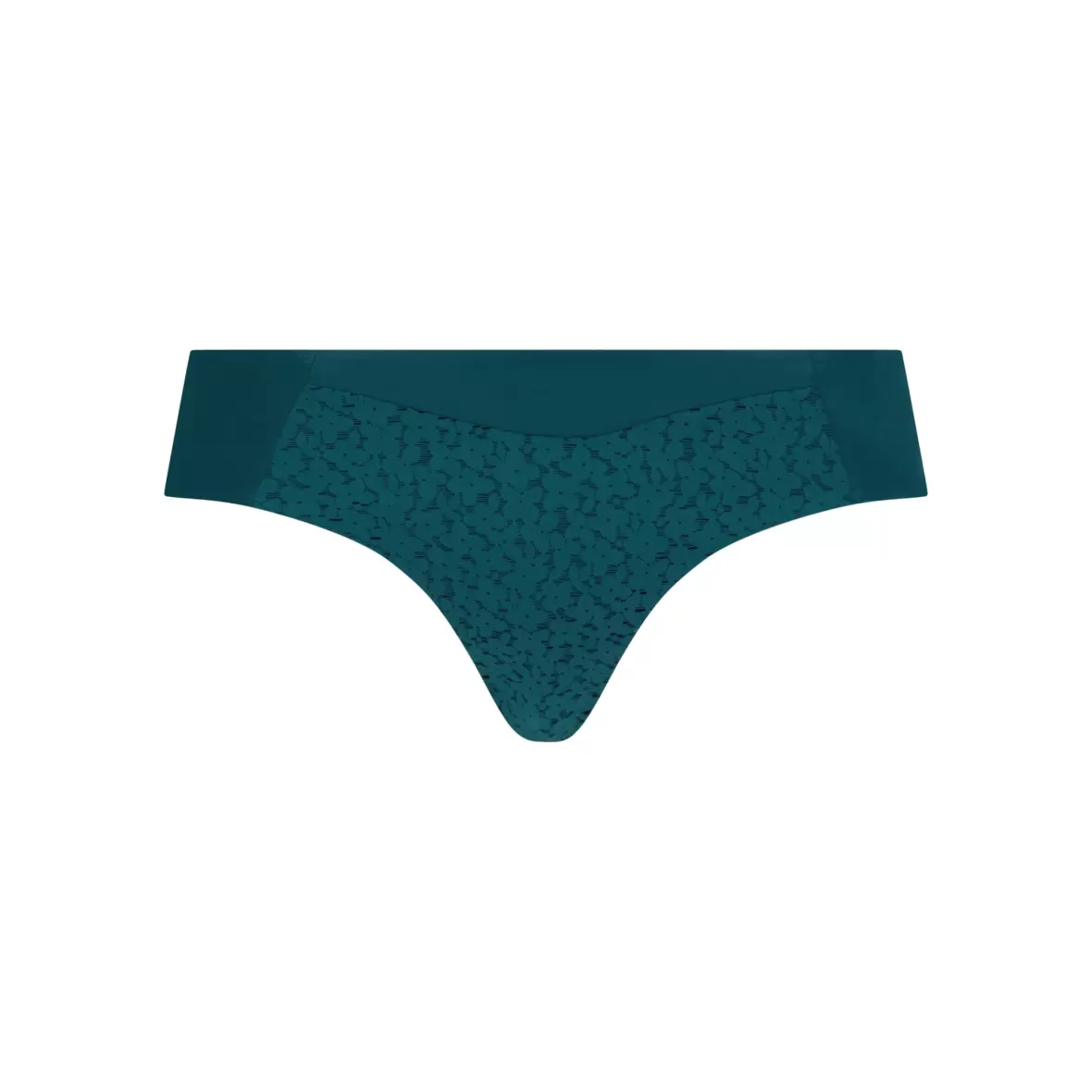 Denne tai trusse i farven Oriental Green er en del af Soft feel kollektionen, som gør trussen blød og behagelig at have på. Trussen har en blomstret blonde foran. Stoffet bagpå trussen samt foran er blødt og uigennemsigtigt. Kanten på trussen er limet, for at undgå tydelige kanter på tøjet.Materiale: