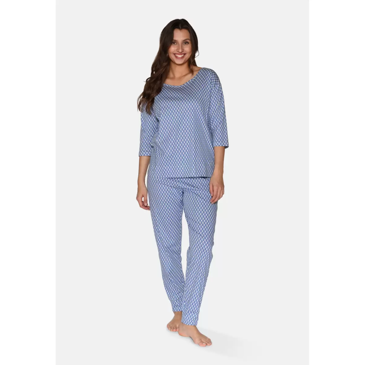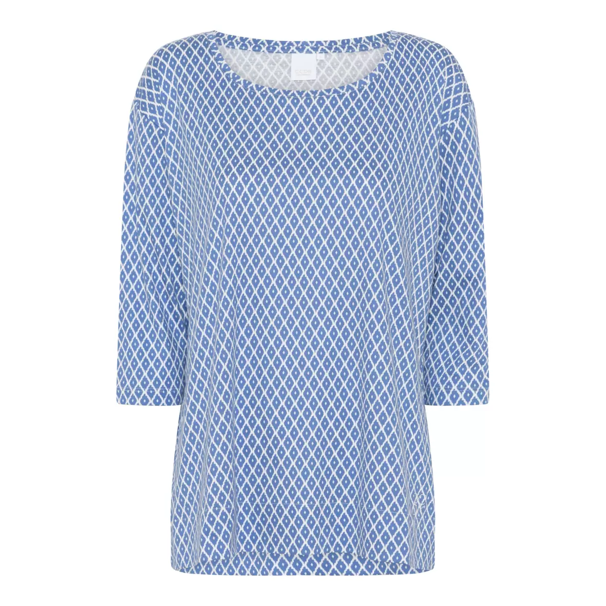 Denne natbluse med halvlange ærmer og i en dejlig blød bomuldskvalitet. Blusen har et blåt mønster med en rund halsudskæring.Materiale: