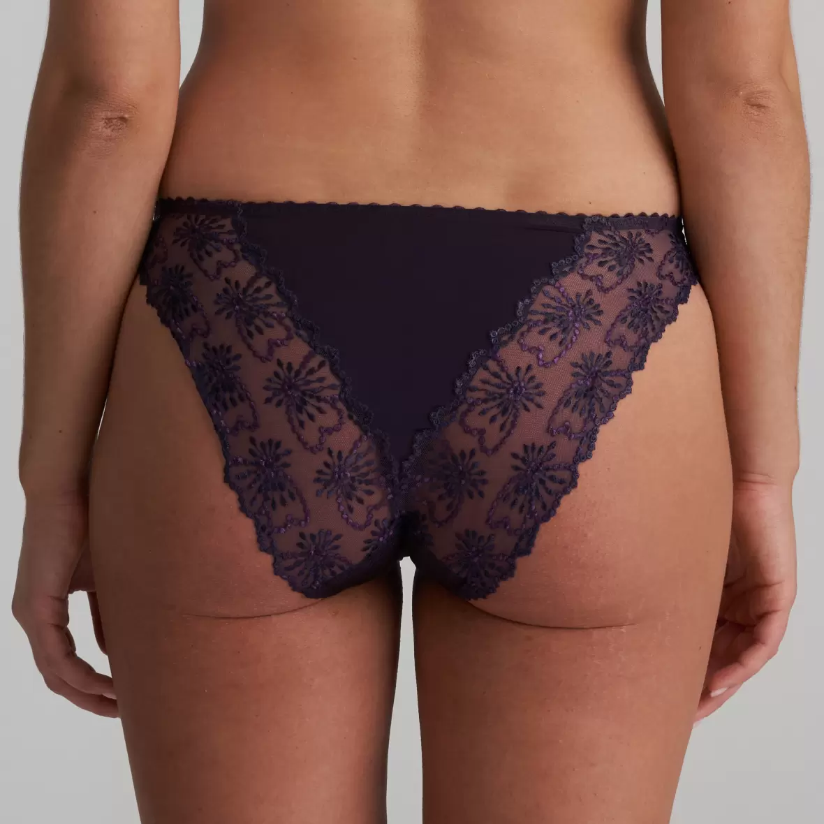 Denne tai trusse har en høj benskæring og en lav livvidde i en neutral farve med farvede nuancer i blonden. Trussen har en smuk blonde bagpå, så man undgår kanter under tøjet. trussens kant i livet er en elastikkant.Materiale: