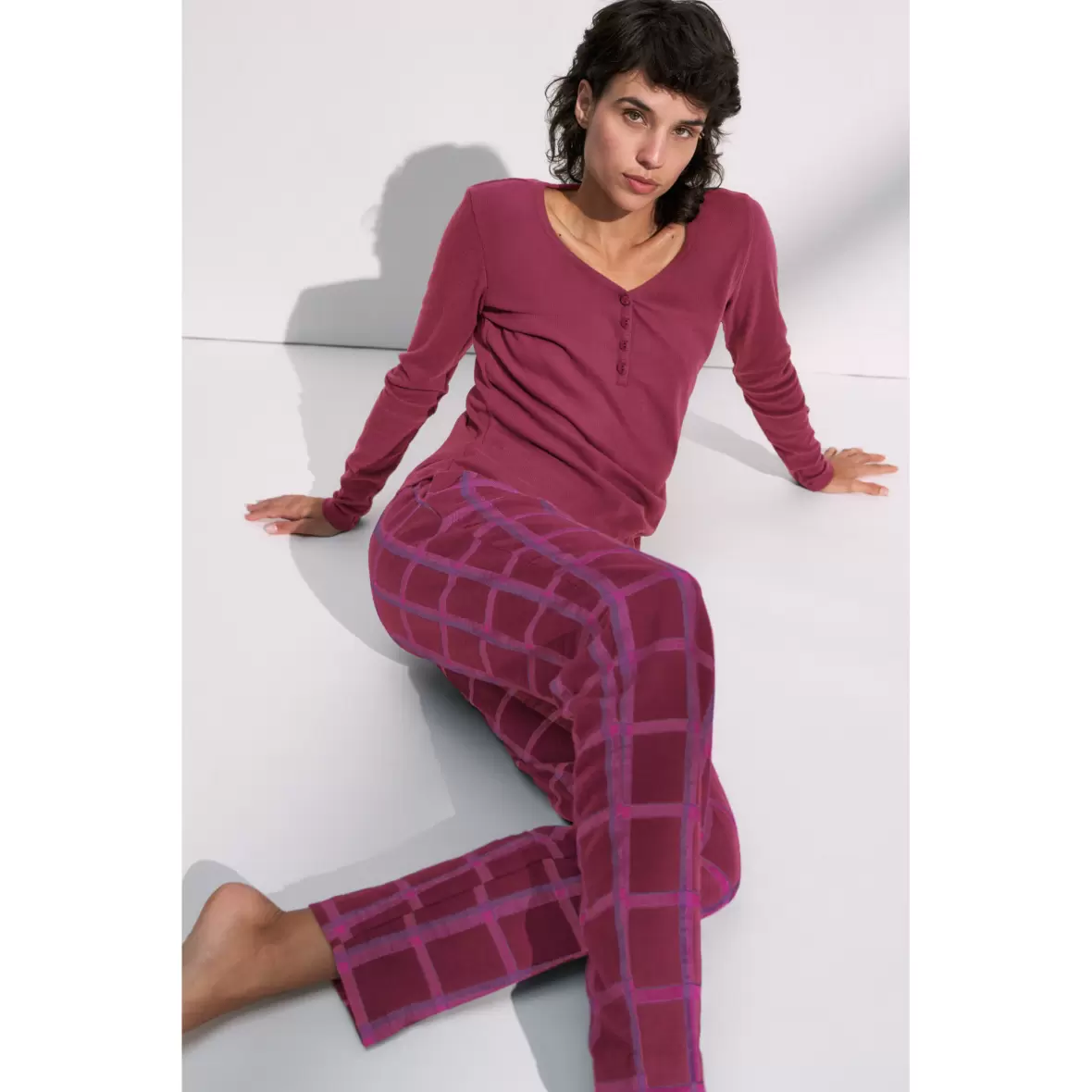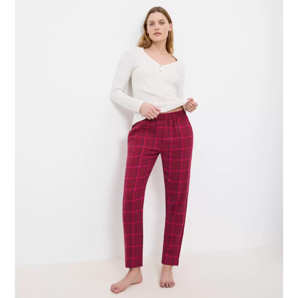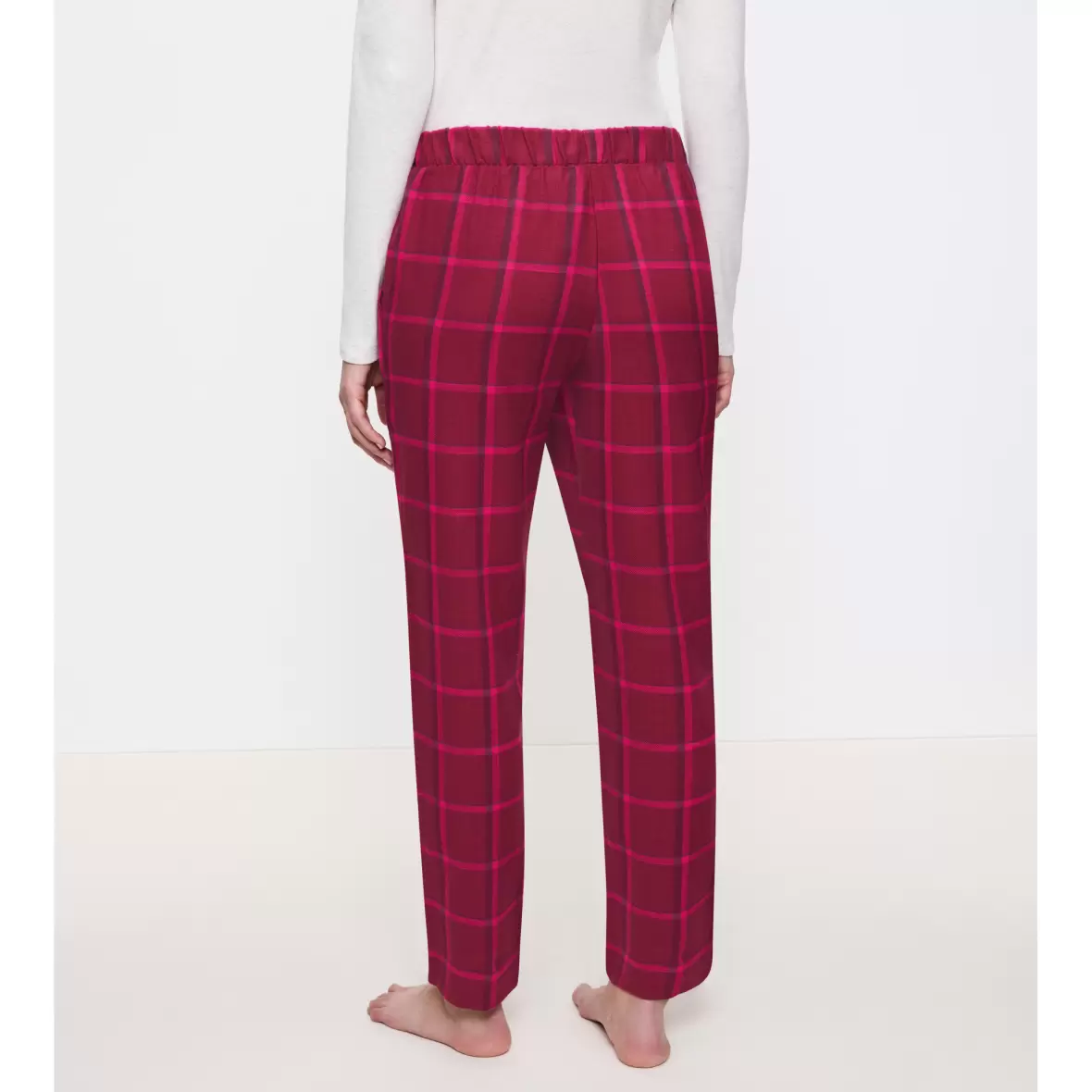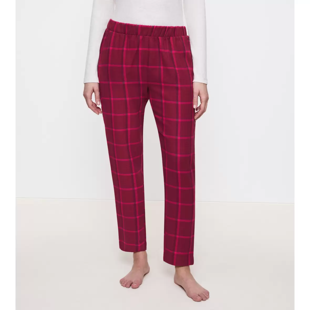 Lækre bomulds natbukser i en lang model, lavet i 100% bomuld.Buksen er en frisk pink og rødlig farve med ternet mønster.