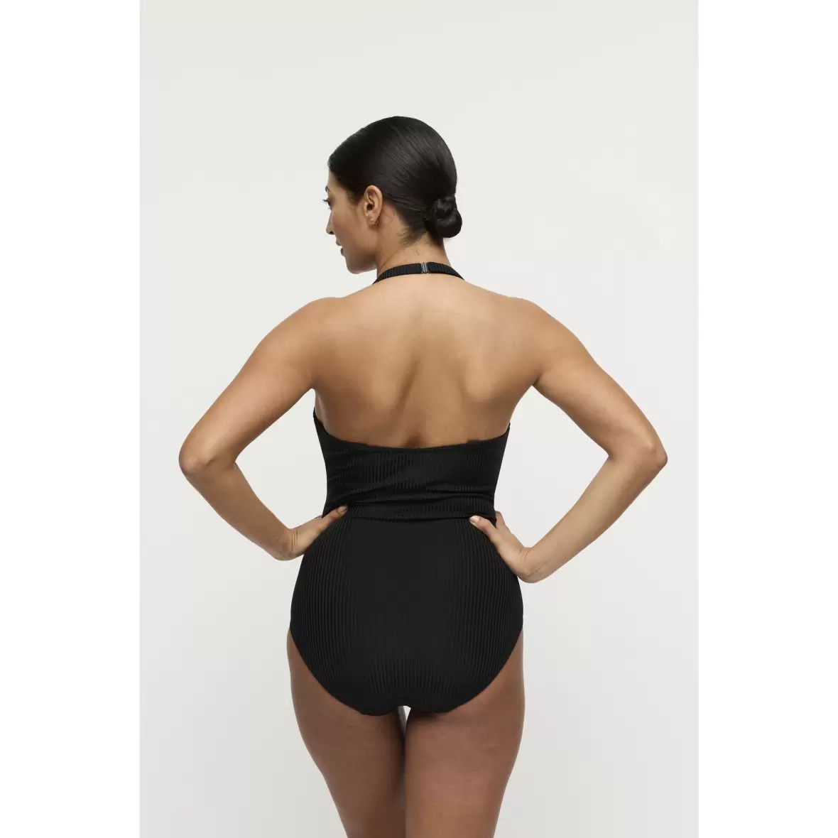 Smart badedragt fra Primadonna i sort, med et ribbet look.Badedragten er med bøjle og uden vattering.