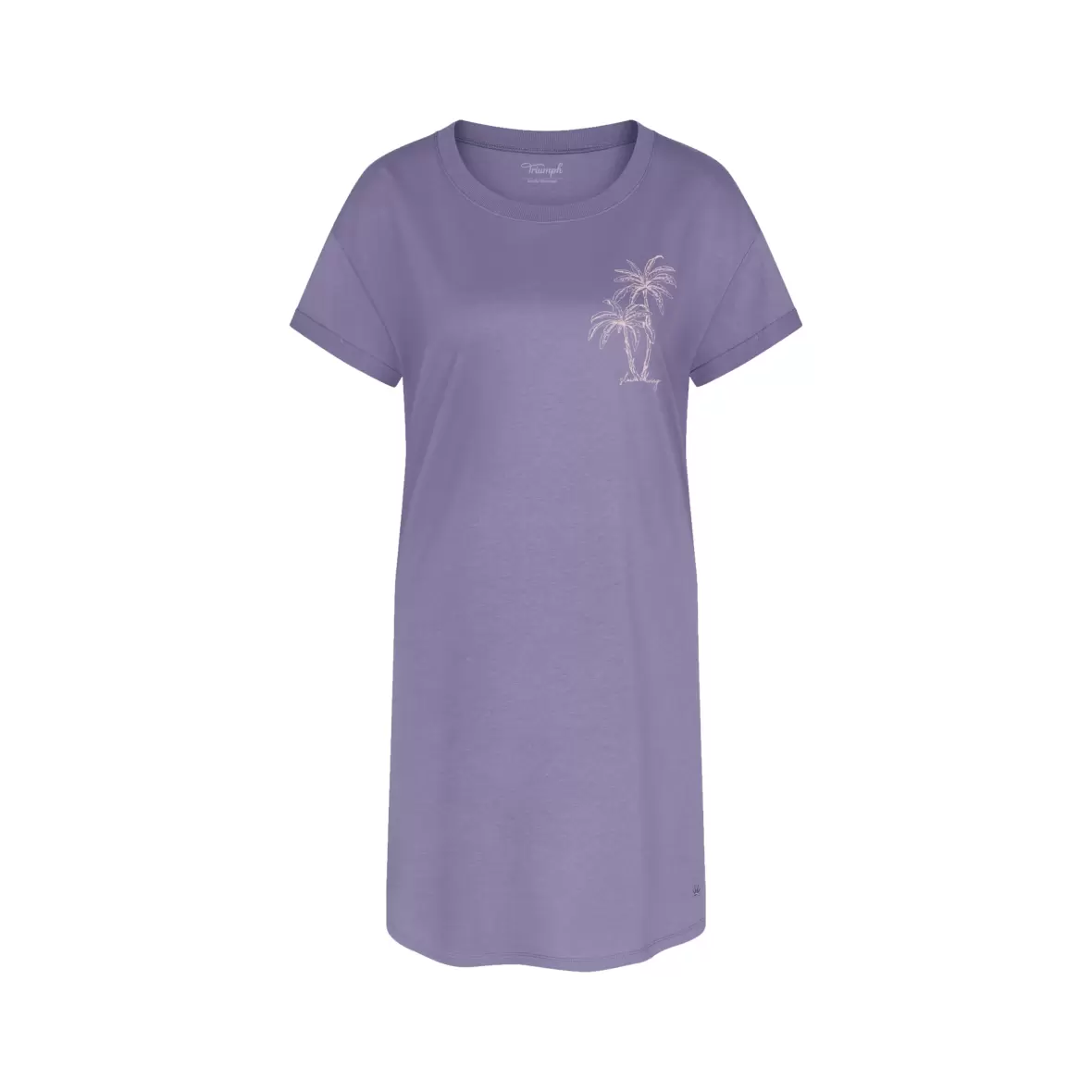 Klassisk natkjole fra Triumph med korte ærmer og tekst på brystet. Denne natkjole er i en smuk lilla farve. Den ribbede ovale halsudskæring giver et feminint touch, mens den runde kantafslutning sikrer en behagelig pasform. Uanset om du skal slappe af derhjemme eller sove, så er denne kortærmede natkjole det ideelle valg.Materiale: